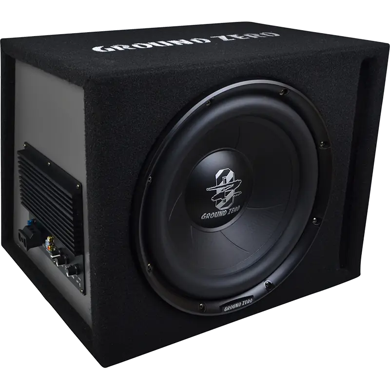 12″ vented subwoofer loaded active enclosure 300 Watt maxSubwoofer GZIW 30Front vented150w RMS / 300w Max amplifierWooden enclosureHigh level inputAutomatic turn-on functionLow pass filterPhase correctionCarpet with logo embroideryDimensions (W x H x D1/D2) 460 x 320 x 327/255 mm